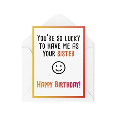 Funny Birthday Cards You're So Lucky to Have Me As Your Sister Brother Card Fun Cute Witty for Him Friend Joke CBH352