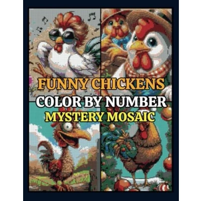 Funny Chicken Mystery Mosaics Color by Number: 50 Pixel Art Puzzles for Adults and Kids Stress Relief & Relaxation