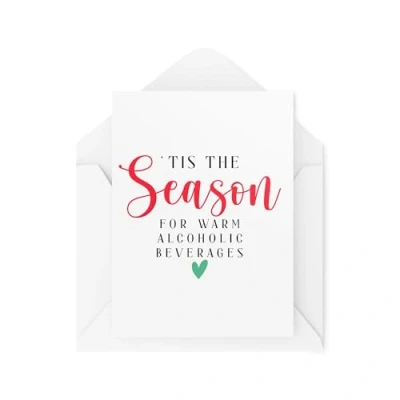 Funny Christmas Cards Tis the Season for Warm Alcoholic Beverages Banter Card Seasonal Greetings Festive CBH1864