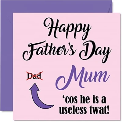 Funny Fathers Day Cards for Mum Dad Useless Tw*t Offensive Rude Happy Father's Card Mother from Daughter Son, 145mm x Joke Humour Banter Greeting Gift Mama Mom Mommy