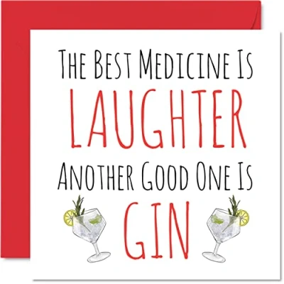 Funny Get Well Soon Cards for Men and Women Best Medicine is Laughter Another Gin, Speedy Recovery Card, 145mm x Joke Humour Greeting Friend Brother Sister Colleague