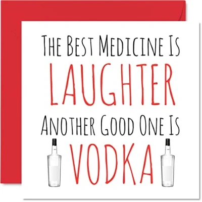 Funny Get Well Soon Cards for Men and Women Best Medicine is Laughter Another Vodka, Speedy Recovery Card, 145mm x Joke Humour Greeting Friend Brother Sister Colleague