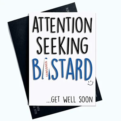 Funny Get Well Soon Cards Greeting Rude Attention Seeking B*stard Thinking of You Colleague Card Coworker Joke PC633