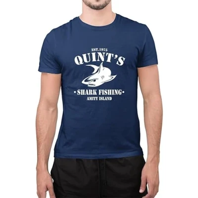 Funny Inspired Quints Shark Fishing Jaws Class Unisex T Shirt (Navy Blue, Medium)