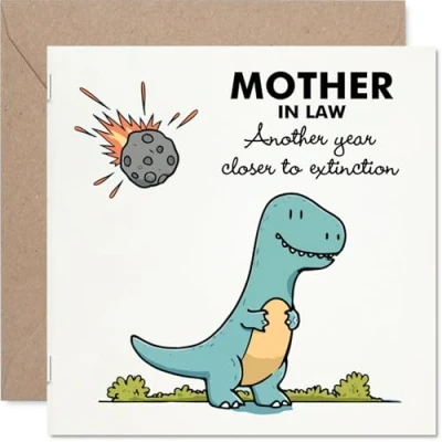 Funny Mother in Law Birthday Card Closer To Extinction Cheeky Happy for from Son Daughter, 145mm Joke Humour Bday Greeting Cards