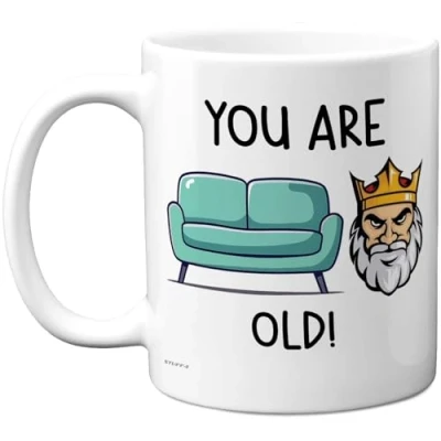 MAKE YOUR FRIEND LAUGH ON THEIR SPECIAL DAY: If you are looking for the perfect Birthday Gift for your Friend then look no further. This exceptional quality mug bears the design 'You might be the greatest Friend but you are Sofa King old!'. Use for all occasions such as Bday, Birthday, Christmas or at any point to show your appreciation. Special Birthday gifts for Family from Neighbour or Friends. WHAT DO YOU GET: This novelty mug for Their is made from the highest quality mugs available on the market. An 11oz ceramic gloss finished mug with a large handle for ease of use. The cheeky design is printed on both sides so no one will miss it. Incredibly funny and thoughtful gifts for men from Stuff4 Ltd. Friend Birthday gifts. PACKED FOR PROTECTION: Every order is packed in a drop proof double walled cardboard Mug Mailer which are lightweight and strong enough to provide total protection. So have your Family in pieces and not the fun mug.Bday gifts from Neighbour, Family Birthday gift, Colleague Birthday gifts, Bday gifts, Friend mugs. MADE AND QUALITY CHECKED IN THE UK: We manufacture all our product right here in the UK so you can be sure of a fast turnaround and a product that is expertly made - for Friend Birthday gifts. Great Friend Bday gifts from Neighbour or Friends. Family Birthday present from Neighbour, Colleague gift Friend, Bday present for Family, Colleagues Birthday presents, Bday gifts from Friends, funny Bday gift. 11oz DISHWASHER AND MICROWAVE SAFE MUGS: Made from premium ceramic our 11oz heavyweight mugs are manufactured with a dishwasher safe premium coating. This means that the colours of your image will not fade from even after multiple cycles (up to 800) through a dishwasher and they are also microwave safe.happy Birthday gift Friend, Family Bday gifts.