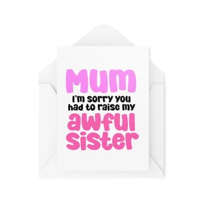 Funny Mum Cards I'm Sorry You Had To Raise My Awful Sister Mothers Day Birthday CBH1982