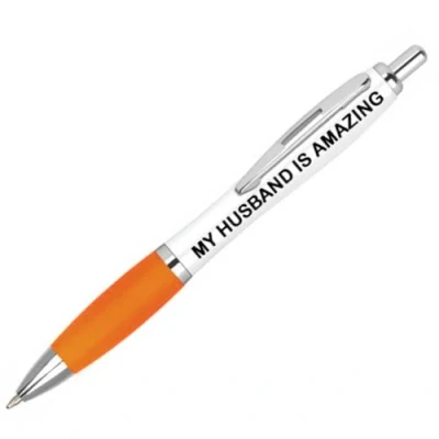 UNIQUE & FUNNY PEN FOR SPOUSES – This plastic ballpoint pen, complete with a bright orange grip and smooth black ink, is perfect for adding a splash of humour to your desk. Ideal as a light-hearted birthday gift for husband or wife, it reads “My Husband is Amazing,” making it a sweet yet funny reminder of your love ❤️. PERFECT FOR ANY OCCASION – Whether it’s a cute Valentine's gift for him, a Christmas gift for wife, or just a little surprise, this pen is a unique way to show appreciation. It’s an easy yet meaningful way to keep things light-hearted and fun! 🎁 GREAT STOCKING STUFFER – Looking for husband Christmas gifts or wife gifts for Christmas? This pen makes an excellent stocking stuffer that’s both affordable and full of charm. Perfect for adding a smile to those Christmas morning surprises! 🎄 SIMPLE & THOUGHTFUL GIFT – Need a gift for husband or wife that’s both quirky and memorable? This funny pen is a small but thoughtful way to say “I love you” on birthdays, anniversaries, or just because. It’s one of the best husband or wife gifts for every day! 💕 BRIGHTEN THEIR DAY – Every time they use this pen, they’ll be reminded of how amazing you think they are. A great way to add some humour to their workday, making it ideal as a Valentine's gift for him, wife birthday gifts, or funny gifts for husbands and wives alike! ✍️