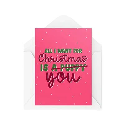Funny Novelty Christmas Cards All I Want For Is (A Puppy) You Present Xmas Celebration Banter CBH1346