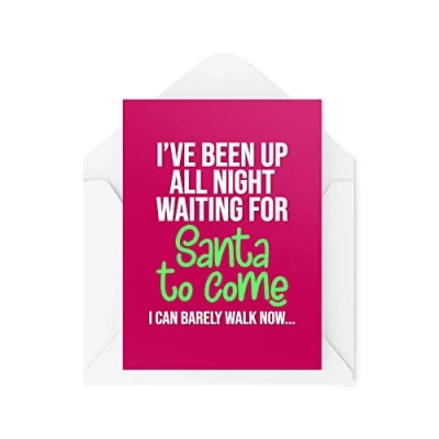 Funny Novelty Christmas Cards I've Been Up All Night Waiting For Santa To Come Present Celebration Banter CBH1353