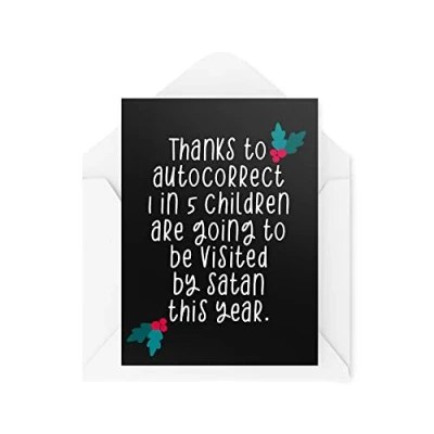 Funny Novelty Christmas Cards Thanks To Autocorrect Satan Santa Present Xmas Celebration Banter CBH1358