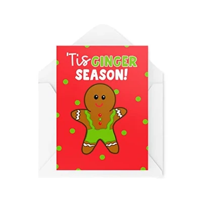 Funny Novelty Christmas Cards Tis Ginger Season Gingerbread Man Present Xmas Celebration Banter Joke CBH1390
