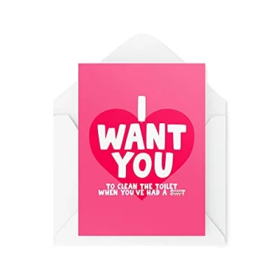 Funny Novelty Greeting Cards I Want You To Clean The Toilet When You've Had A Girlfriend Boyfriend Wife Husband Banter CBH1325