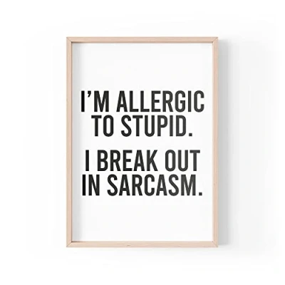 Funny Quote Print Home Prints I'm Allergic To Stupid Banter Aesthetic Wall Art Joke Office A4 A3 A5 *FRAME NOT INCLUDED* PBH137
