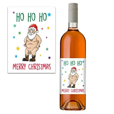 Funny Rude Christmas Wine Bottle Label Xmas Present Idea for Him & Her Pack 1