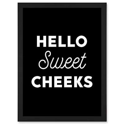 Funny Toilet Decor Bathroom Wall Art Hello Sweet Cheeks Cheeky Sign Artwork Framed Print A4