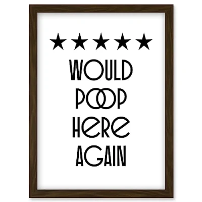 Funny Toilet Review Sign Five Stars Would Poop Here Again Bathroom Wall Art Decor Artwork Framed Print A4