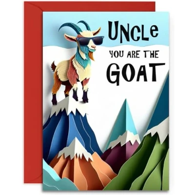 Funny Uncle Birthday Card You are the GOAT Fun Men's Happy or Father Day for A5 Size with Red Envelope