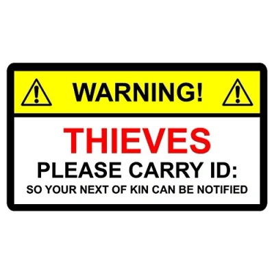 Funny Warning Sticker Thieves Carry ID SO Your Next of KIN Toolbox Motorcycle 150mm x 100mm