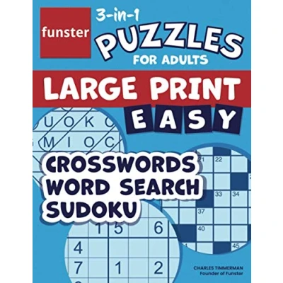 Funster 3 in 1 puzzles for adults Large Print Easy Crosswords, Word Search, Sudoku: Activity puzzle book with 100+