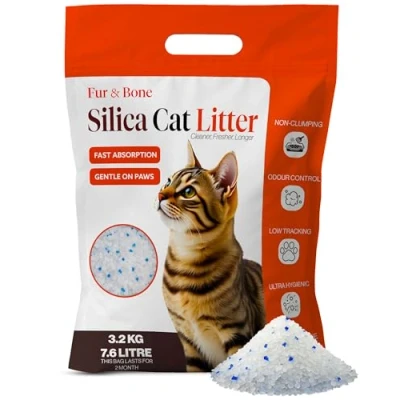 SUPERIOR ABSORPTION & COMFORT FOR CATS AND KITTENS: Our Fur & Bone silica cat litter crystals deliver exceptional absorbency, locking in moisture instantly to keep your cat’s litter tray fresh and dry. Perfect for use as non-clumping cat litter, the gentle texture is comfortable for delicate kitten paws and adult cats alike. This premium kitty litter reduces tracking around your home and is ideal for litter & housetraining for cats. Whether you’re filling a cat litter bin or using a smaller tray, these ultra-absorbent silica granules ensure lasting dryness for maximum comfort. ADVANCED ODOUR CONTROL & LOW DUST FORMULA: Say goodbye to unpleasant smells with our crystal kitty litter designed for long-lasting odor control. The highly porous silica traps urine and ammonia odors, keeping your cat litter area smelling fresh for weeks. Perfect for households with multiple cats, this non-clumping cat litter is low in dust to protect respiratory health, making it suitable for kittens and sensitive cats. Use it in a cat litter bin or open tray for optimal freshness. The fast-drying properties mean less mess, less tracking, and a cleaner environment for you and your pets. EASY CLEANING & LOW MAINTENANCE DESIGN: Simplify your cat care routine with our non-clumping cat litter that’s easy to clean and maintain. Silica cat litter crystals absorb liquid quickly, leaving solids on the surface for easy removal. No heavy clumping means less scraping and more convenience, making it perfect for busy cat owners. This lightweight, low-dust kitty litter is compatible with most cat litter bins and trays, offering hassle-free litter & housetraining for cats. Just top up as needed, and enjoy a fresher, cleaner litter box with minimal effort. LONG-LASTING & COST-EFFECTIVE: Our premium silica cat litter bag is designed to last longer than traditional clumping clay litters, saving you time and money. Each granule absorbs multiple times its weight in liquid, keeping the cat litter tray drier for extended periods. Ideal for multi-cat households or single cats, this non-clumping cat litter is perfect for litter & housetraining for cats of all ages. Its ultra-absorbent nature means fewer full litter changes, making it a cost-effective choice for keeping your kitty litter area clean and fresh. SAFE, GENTLE & SUITABLE FOR ALL CATS: Made from high-quality, non-toxic silica, our Fur & Bone non-clumping cat litter is safe for kittens, adult cats, and senior felines. The smooth crystal texture is gentle on paws, encouraging your pet to use the litter tray consistently. Whether used in a cat litter bin, open box, or self-cleaning litter system, it offers superior comfort and hygiene. Perfect for litter & housetraining for cats, this low-dust kitty litter keeps your home fresher and cleaner while supporting your cat’s health and happiness.