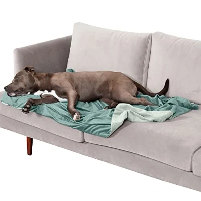 DESIGNED FOR PETS: This soft, super snuggly blanket will help keep your pet warm and cozy in the cold evenings and even colder winter months; featuring reversible two-tone colors, it also serves to complement your home decor SLEEP SURFACE: The blanket features a luxuriously lustrous and silken velvet surface that is gentle on noses and paws for enhanced snuggling comfort WATERPROOF: The snuggly soft velvet fabric comes with waterproof coating to protect bed and living room furniture against dirt, spills, and accidents MULTIPURPOSE: In addition to indoor furniture, the waterproof blanket can also be used as a car seat cover to protect the interior of your car from dirt, dander, and accidents, while providing your pup optimum snuggling comfort PRODUCT DETAILS: Celadon Green; Large, 50" x 35" x 0.25" AVAILABLE VARIANTS: The throw blanket comes in Brownstone, Granite Gray, and Celadon Green; it's also available in Small, Medium, Large, and Extra Large EASY CARE: The dog blanket is completely machine washable for your convenience; for more specific washing instructions, please refer to the hang tag and/or seam label (if applicable)