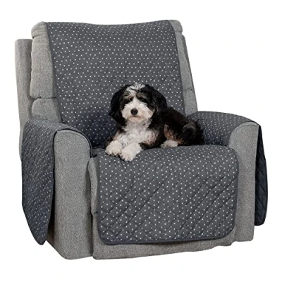 FURNITURE PROTECTION: The furniture protector covers the seating area, backrest, as well as both armrests to better guard your living room furniture against pet- or human-related stains, spills, and debris WATER-RESISTANT: The furniture cover surface features thread-free pinsonic quilting with water-repellent coating to maximize protection against spills and accidents SLEEP SURFACE: The quilted fabric is gentle on noses and paws for enhanced snuggling comfort; the reversible surface design also features cute polka paw print design on one side and a stark solid color on the other SAFE AND SECURE: To keep from shifting and sliding, the cover comes with an adjustable elastic band that wraps around the backrest, as well as anchors that sink in between the cushions to keep it fastened securely against the furniture PRODUCT DETAILS: Gray; Recliner, 25" (Base Width), 85" x 90" x 0.25" (Overall) AVAILABLE VARIANTS: The furniture protector comes in Biscuit Brown and Gray; it's also available in Chair, Recliner, Loveseat, and various Sofa sizes EASY CARE: The furniture protector is made easy to clean for your convenience; for more specific cleaning instructions, please refer to the hang tag and/or seam label (if applicable)