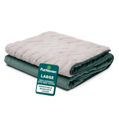 DIY BY DESIGN: Get this bed cover and use old clothes, shredded foam, beanbag beads, buckwheat hulls, or even feathers - whatever works best for you and your pet for a great budget do-it-yourself solution PRODUCT DETAILS: Celadon Green; Large, designed to fit 36" x 27" x 3" foam mattress AVAILABLE VARIANTS: The dog bed cover comes in Brownstone, Granite Gray, and Celadon Green; it's also available in Small, Medium, Large, Jumbo, and Jumbo Plus EASY CARE: Pets can present some unique cleaning challenges, which is why Furhaven made sure that the dog bed cover is completely machine washable for your convenience International products have separate terms, are sold from abroad and may differ from local products, including fit, age ratings, and language of product, labeling or instructions.