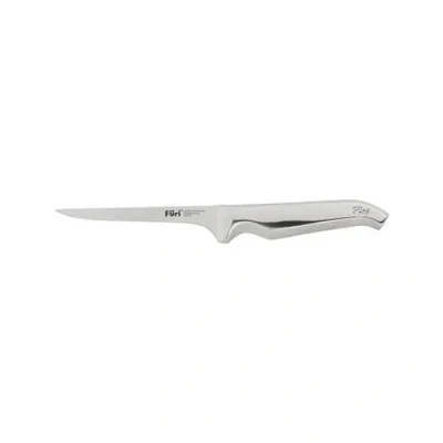 The Furi Pro 13cm Boning Knife has a narrow blade which is perfect for removing bones from meat and trimming fat.Furi knives are manufactured from Japanese high carbon stainless steel which is hard wearing and easy to sharpen. The seamless construction of each knife means there are no areas where food and dirt can get trapped, making them extremely hygienic.Their innovative patented handles feature a wedge-shaped design which locks comfortably on to the hand, reducing fatigue and slipping towards the blade. A tapered bolser has been engineered for comfort and safety and allows the blade to be sharpened right to the heel of the blade.Hand wash knives and dry thoroughly after use.25 year Furi guarantee.  Knives are not for sale to persons under the age of 18. - all knives and bladed products are delivered by Age Verified Delivery (AVD). The carrier may request proof of age in order to deliver your parcel. If proof of age is not available, or the recipient is underage, the carrier will refuse to deliver.