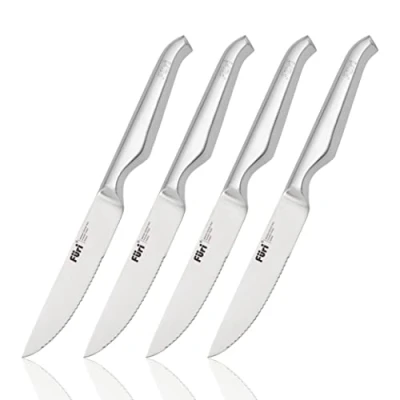 Furi Pro Serrated Steak Knives 4 pc Set, Four Premium for a Superior Cutting Performance, Stainless Steel Blades and Ergonomic Reverse Wedge, Anti Fatigue Handle Safe Grip