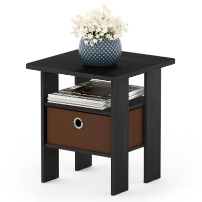Furinno Andrey End Table, Side Nightstand with Bin Drawer, Americano/Medium Brown