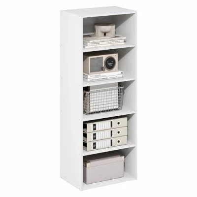 Furinno BASIC Book Shelf, 5 Tier Bookshelf, Cube Storage Organizer Bookcase with Open 11 x 17 44, for Living Room, Bedroom, Home Office, White
