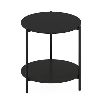 Sleek and streamlined design, making it perfect for both living rooms and bedrooms. Ideal for compact spaces, this table seamlessly fits into tight corners or small rooms, and also serves perfectly as a side sofa table. Features a standout round top, enhancing its elegant appearance. Supported by sturdy metal legs, ensuring durability and adding an industrial charm. Manufactured from high-quality durable composite wood, CARB-compliant composite wood carrying the Programme for the Endorsement of Forest Certification (PEFC). Product Dimensions: 39.5 (W) x 42.01 (H) x 39.5 (D) cm