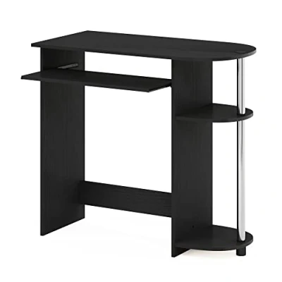 Furinno Computer Desk, Engineered Wood, Americano/Stainless Steel, 80 (W) x 73 (H) 40 (D) cm