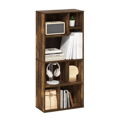 Furinno Daly 7 Cube Irregular Cubes Bookcase, Bookshelf, Storage Organizer, Amber Pine