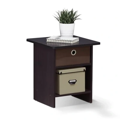 Furinno Dario End Table/ Night Stand Storage Shelf with Bin Drawer, Dark Walnut