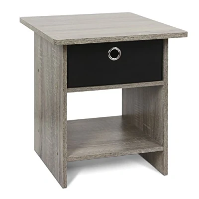 Furinno Dario End Table/ Night Stand Storage Shelf with Bin Drawer, French Oak/Black