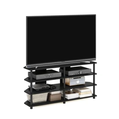 Furinno Econ Easy Assembly 4 Tier Corner TV Stand for up to 55 Inch, Blackwood/Black