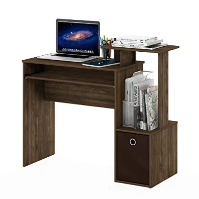 Furinno Econ Multipurpose Home Office Computer Writing Desk, Study w/Bin, Columbia Walnut/Dark Brown, 100.1 (W) x 86.6 (H) 39.9 (D) cm