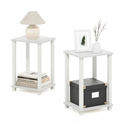 Furinno End, Side Table, Nightstand, Engineered Wood, White/White, 2 Pack
