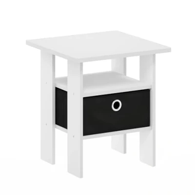 Furinno End, Side Table, Nightstand with Bin Drawer, Engineered Wood, White/Black, 1 Pack