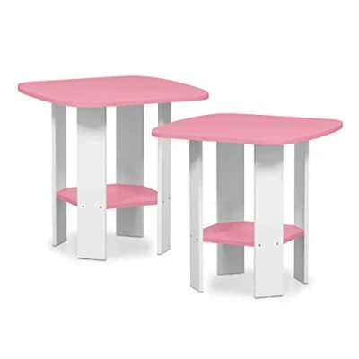 FURINNO End Side Table, Wood, Pink/White, 2 Pack