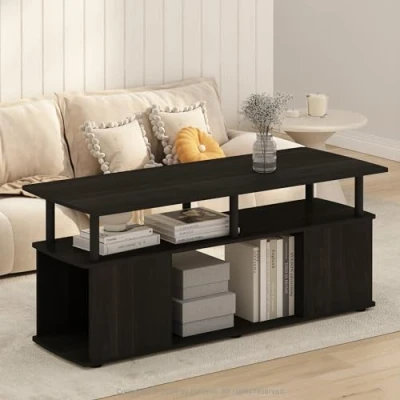 Furinno JAYA Coffee Table, Rectangle Living Room Table with Open Shelf, Side Storage, for Room, Bedroom, Home Office, Black