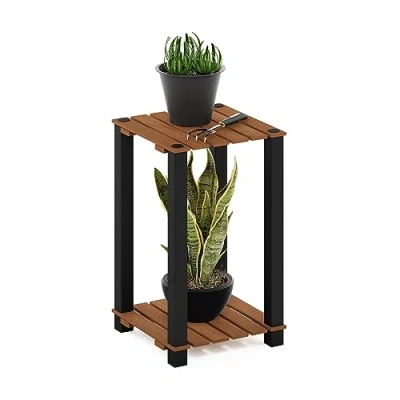 Furinno Outdoor Plant Shelf, Wood, Natural/Black, 2 Tier Square