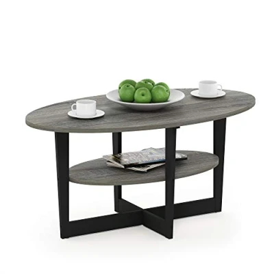 FURINNO Oval Coffee Table, Engineered Wood, French Oak/Black, 1 Pack