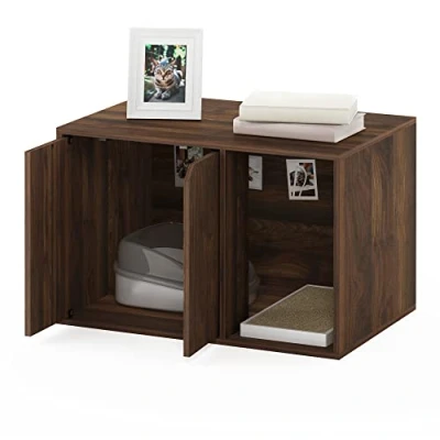 Furinno PELI Cat Litter Box Enclosure, 24 Wide Hidden Furniture with Side Entrance, Wooden Pet House Doors, Easy Assembly, for Living Room, Columbia Walnut