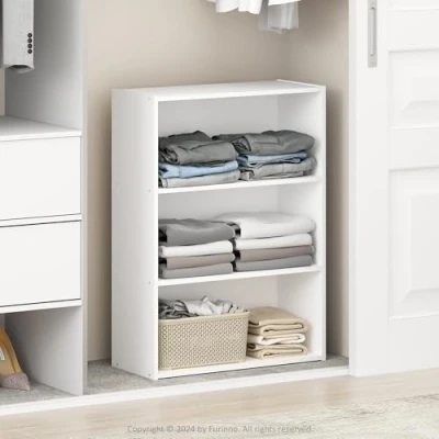 Furinno Reed 3 Tier Multipurpose Open Shelf Clothing & Closet Storage Organization, Plain White