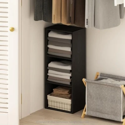 Furinno Reed 3 Tier Open Shelf Multipurpose Closet & Clothing Storage, Storage Organizer, Blackwood