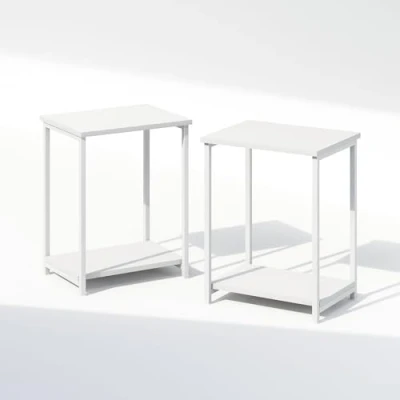 Furinno Simplistic Industrial Metal Frame Nightstand, Bedside Table, 2 Pack, White/White