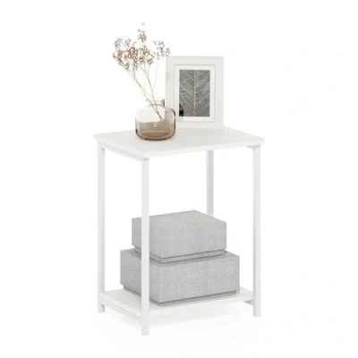 Furinno Simplistic Industrial Metal Frame Side Table, 1 Pack, White/White